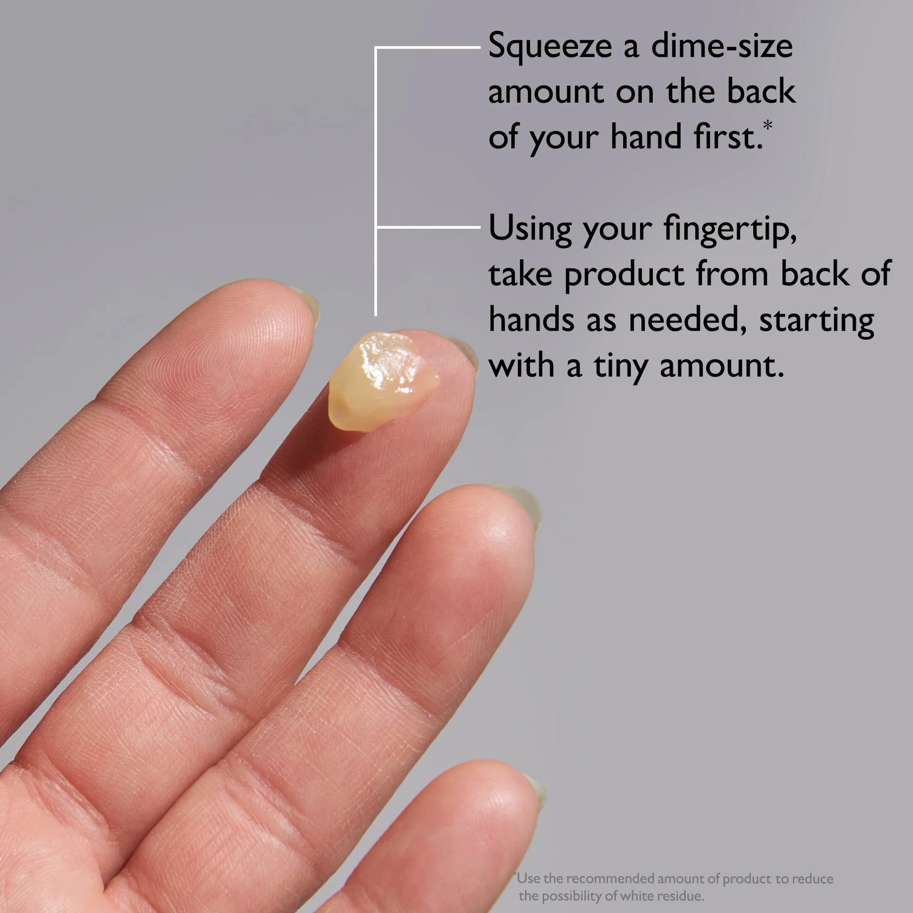 • If residue appears, gently pat (don’t rub) before makeup.